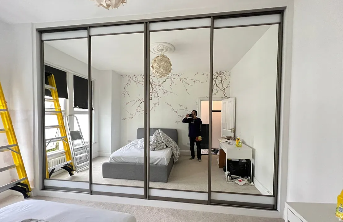 Just like the rest of our bespoke made-to-measure furniture, our mirrored sliding door wardrobes are completely customisable, including features such as panel ratio and the addition of LED lighting to the door frames. The colour palette is another completely customisable feature.