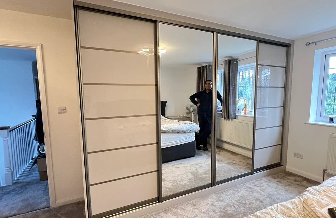 During a recent installation in Kingston, the customer was unable to utilise their potential space. An eye-catching fitted wardrobe with four sliding panels and full-length mirrored doors provided a stylish solution. This installation opened out the room and delivered functional storage.